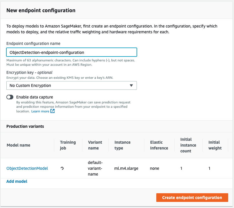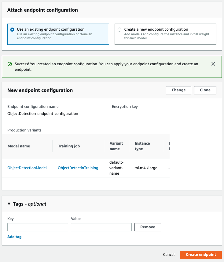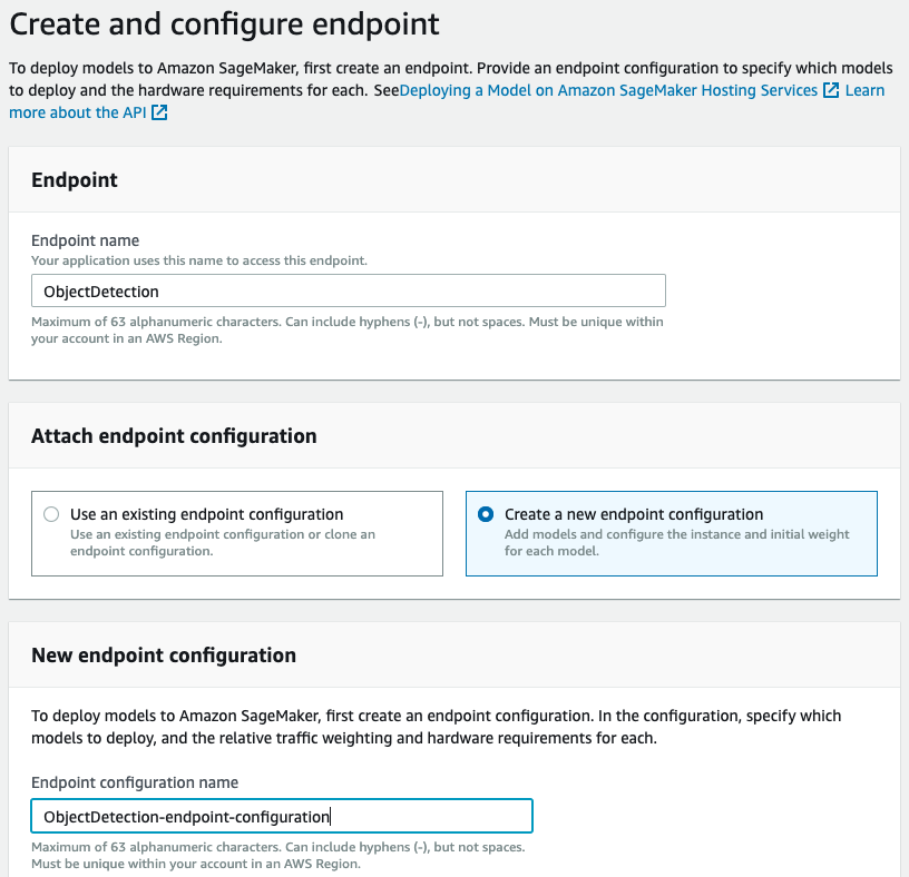 Edit the endpoint name and select “Create a new endpoint configuration”