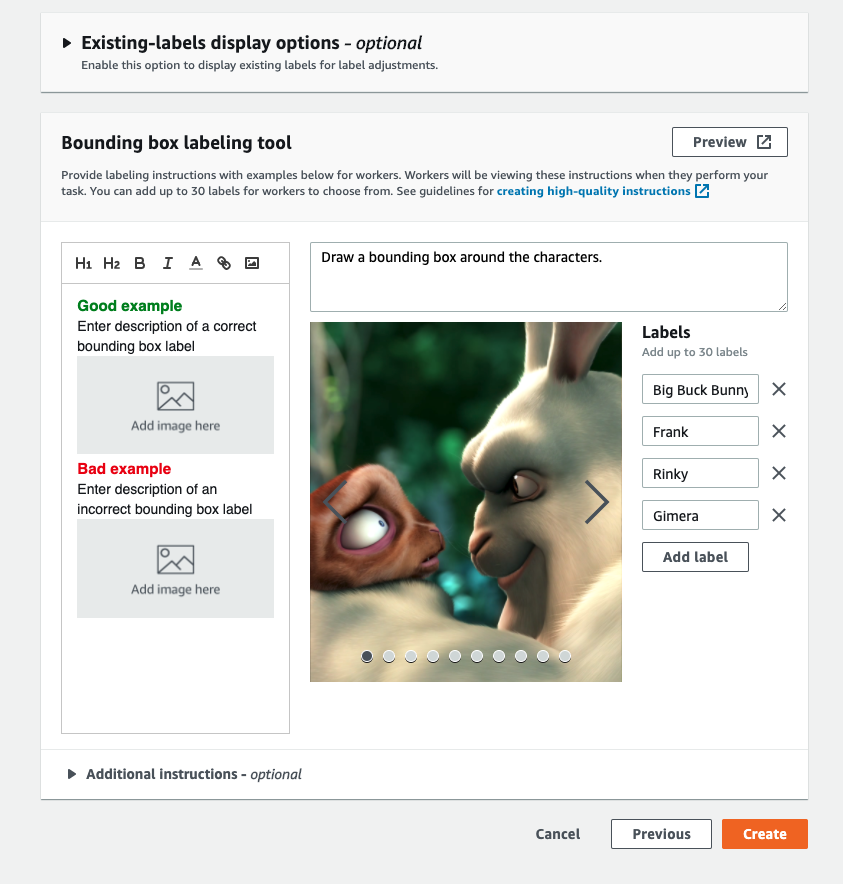 Scrolling down, you need to add brief description for workers to understand the job as well as labels. Click on “Create”.