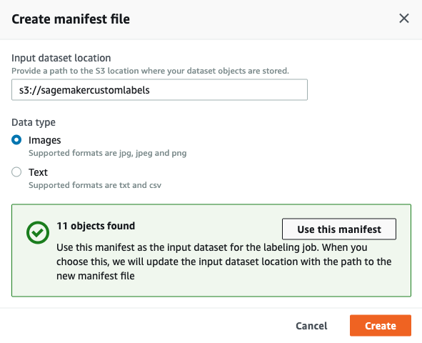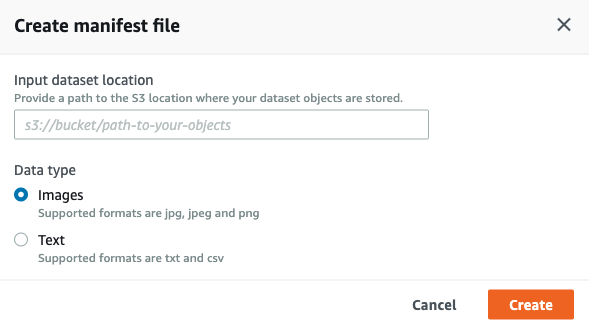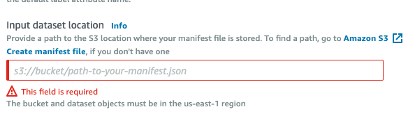 If you do not already have a manifest file for your input dataset, click on “Create manifest file” under Input dataset location