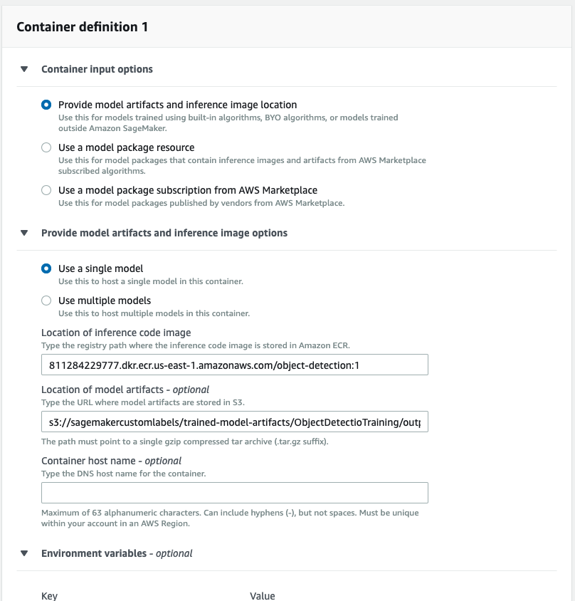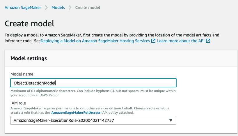 Once the model is created, you can click on “Models” from SageMaker console and see its summary