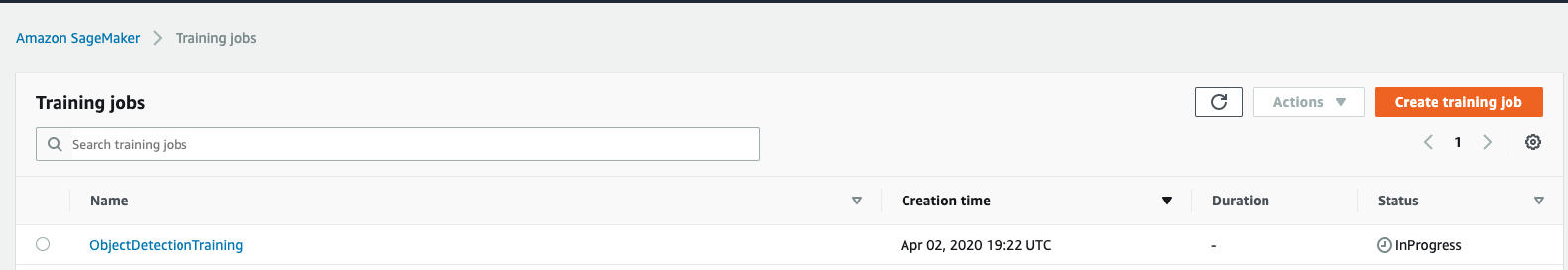 You will see the training job in progress on your SageMaker console.