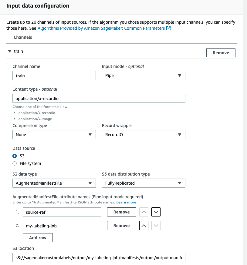 Edit input data configuration section and make sure to put S3 location for the output.manifest file that was created from Ground Truth labeling job.