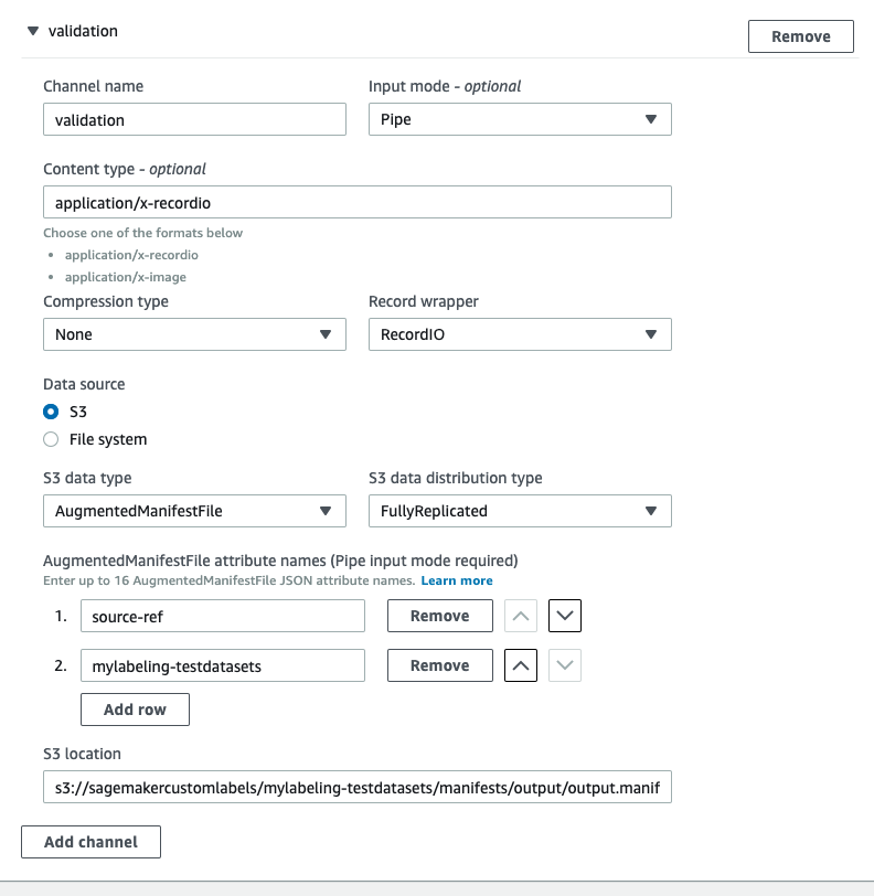 Create another channel named “validation” and fill in similar details as test channel.
